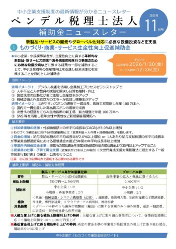 ペンデルグループでは、毎月1回、本コラム掲載の補助金・助成金に加え、税務・会計、人事・労務、医療経営などに関するお役立ち情報を主に経営者の方々へメールでお届けしています。