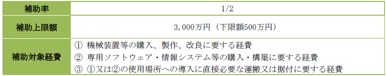 ●中小企業・小規模事業者が、生産性向上に資する革新的な新製品・新サービス開発や海外需要開拓を行う事業のために必要な設備投資などに要する経費の一部を補助することで、中小企業者等の生産性向上を促進し経済活性化を実現することを目的とした補助金